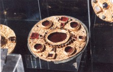 Merowingerzeitliche Goldscheibenfibel von Hüttesdorf ausgestellt im Rheinischen Landesmuseum Trier (Foto R. Schmitt)